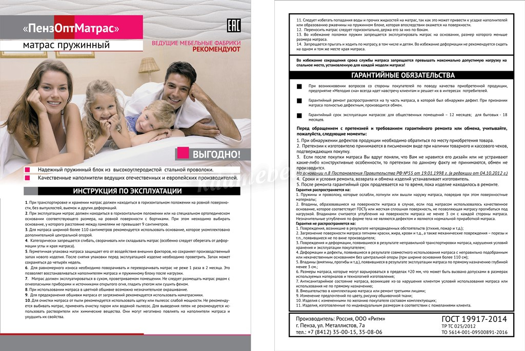 Беспружинная модель на основе 14-см монолитного блокапены Orto-soft. Обшивка выполнена из износоустойчевого материала.