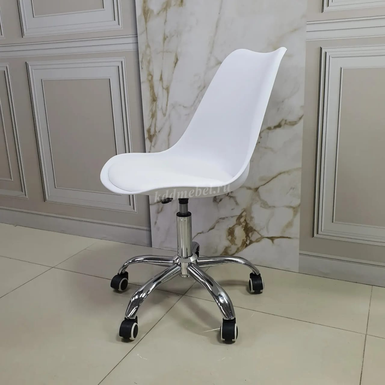 Эргономичность, лаконичность, функциональность и компактность – все эти качества характеризуют рабочее кресло, которое идеально впишется в домашний или офисный интерьер. Модель устойчива и мобильна благодаря широкой вертушке с колесиками. Специальная ручка, расположенная под сиденьем, позволяет регулировать высоту в соответствии с индивидуальными предпочтениями. Элегантный дизайн, сочетание контрастных элементов, удачная комбинация пластика и мягкой подушки, а так же зеркальных металлических поверхностей – все это делает рабочее кресло стильным и выразительным.