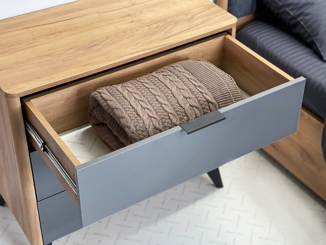 Под высокими, лаконичными опорами, легко уберется робот- пылесос и в вашей спальне всегда будет чисто и свежо.