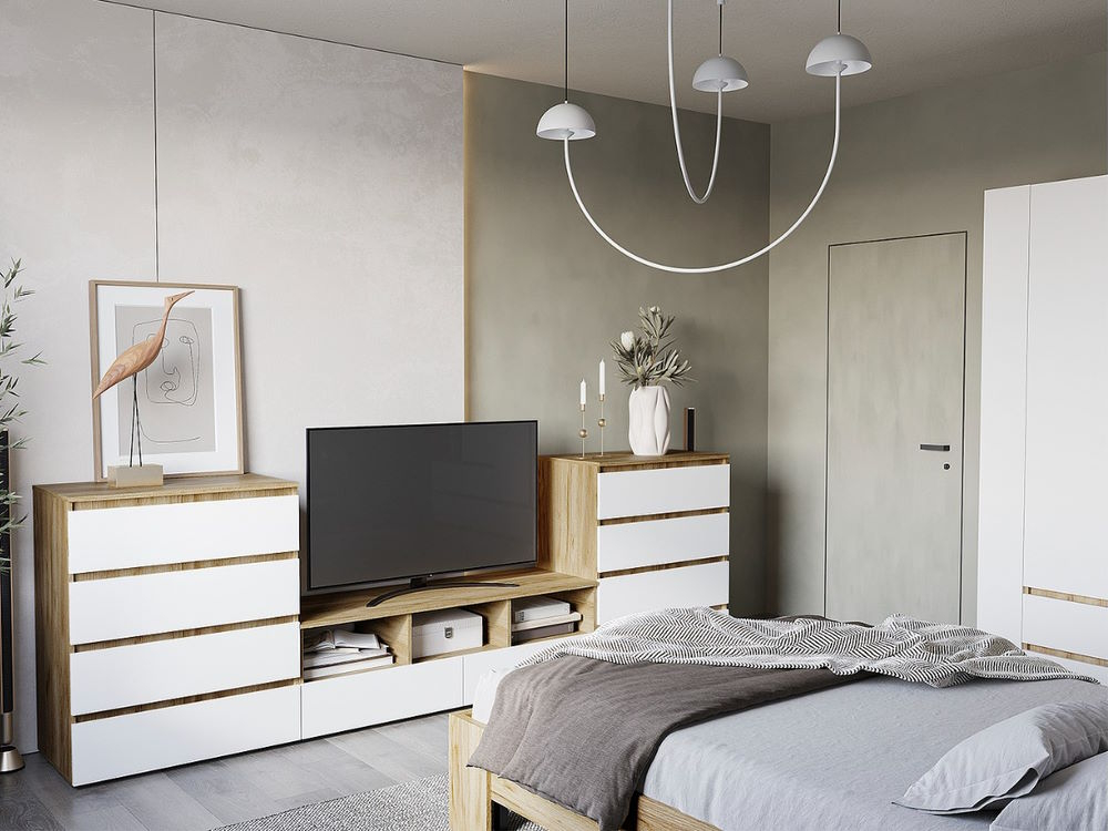 Сквозная коллекция Хелен, выполненная в сочетании декора ЛДСП "Белый шагрень" с теплым древесным декором ЛДСП "Крафт золотой" придает пространству чувство единения с природой.