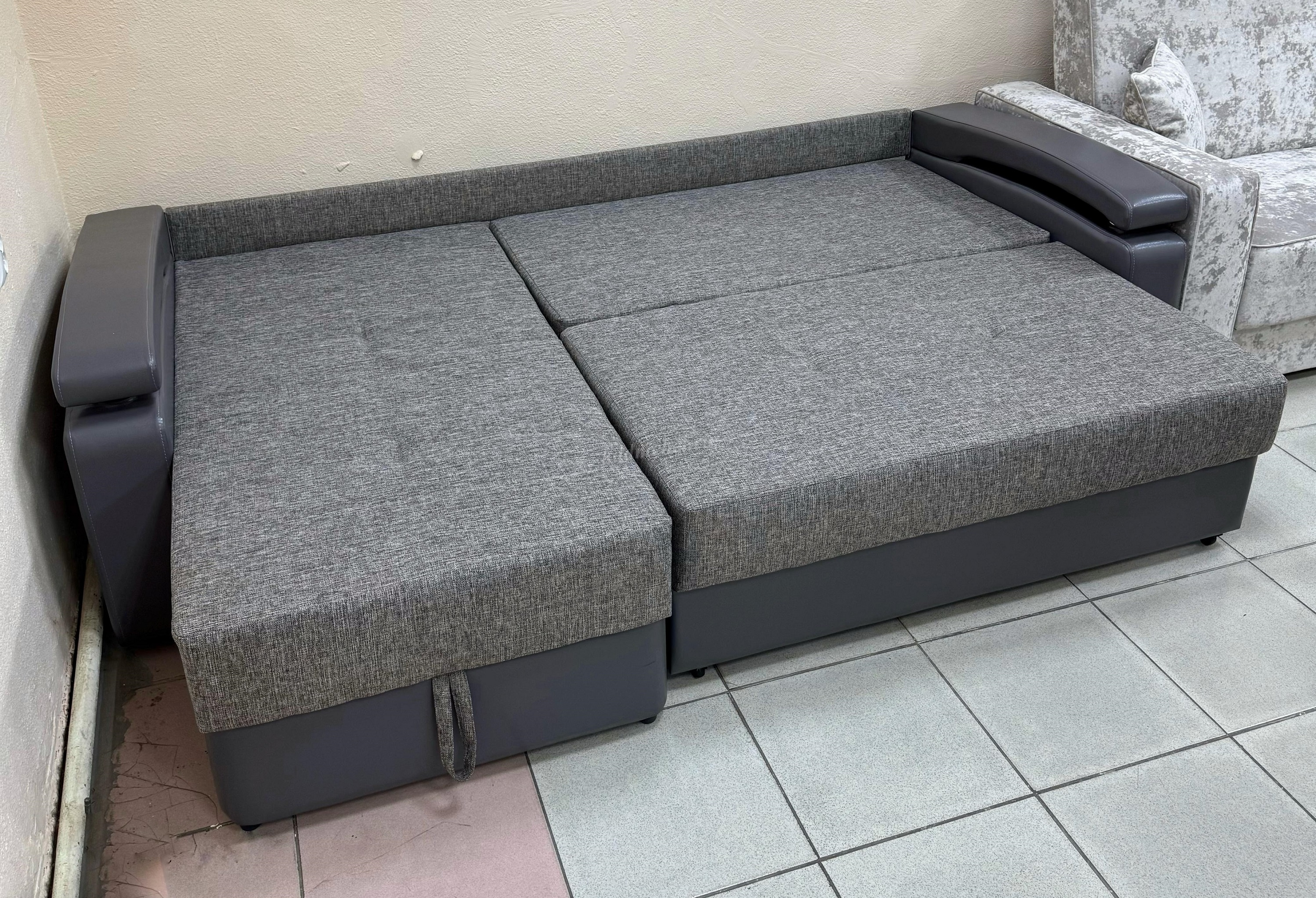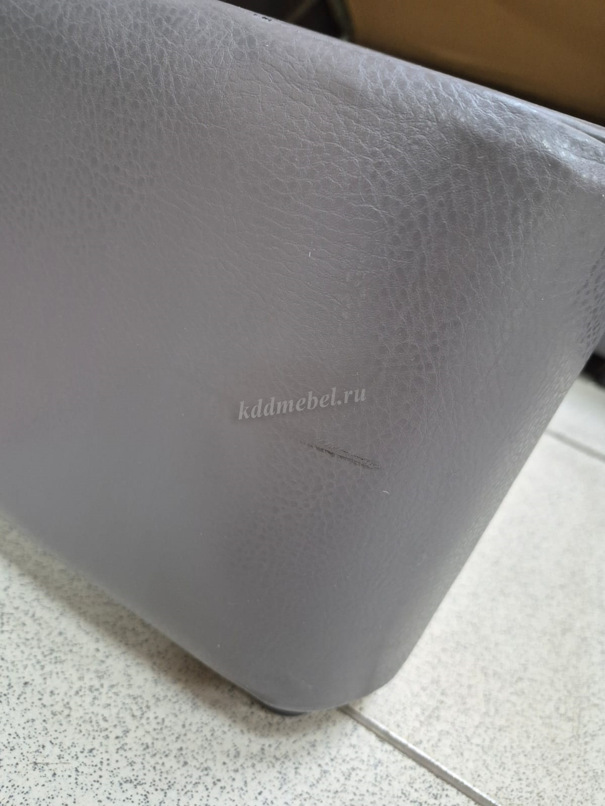 На оттоманки дивана на к/з царапина , на подлокотнике есть дефекты на к/з .
