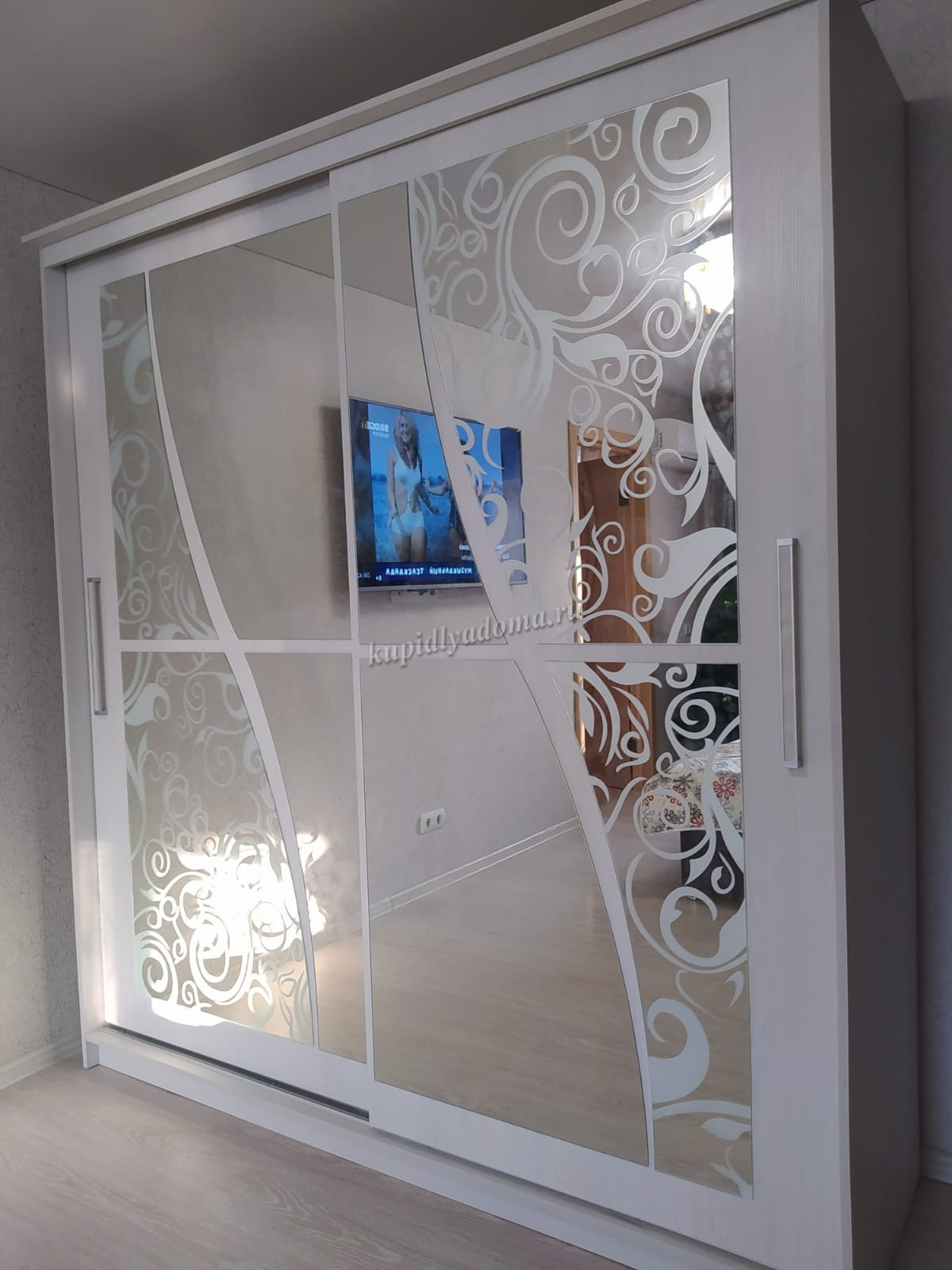 Шкаф-купе с зеркалом Лето-2 1.2 (Белый)